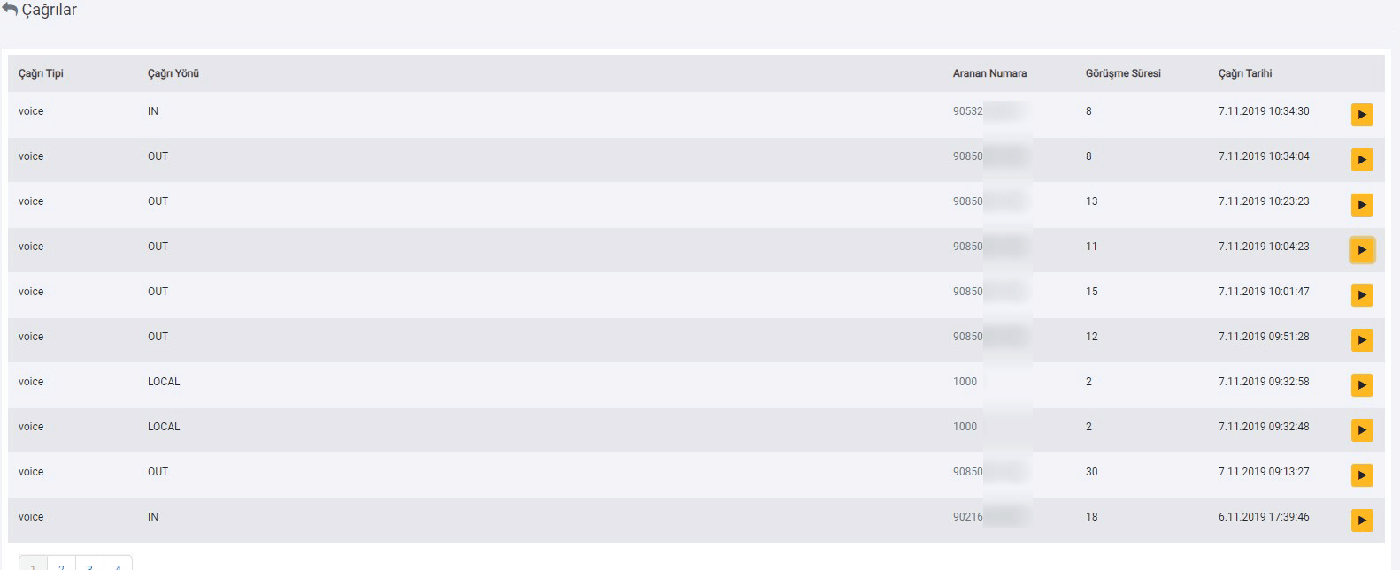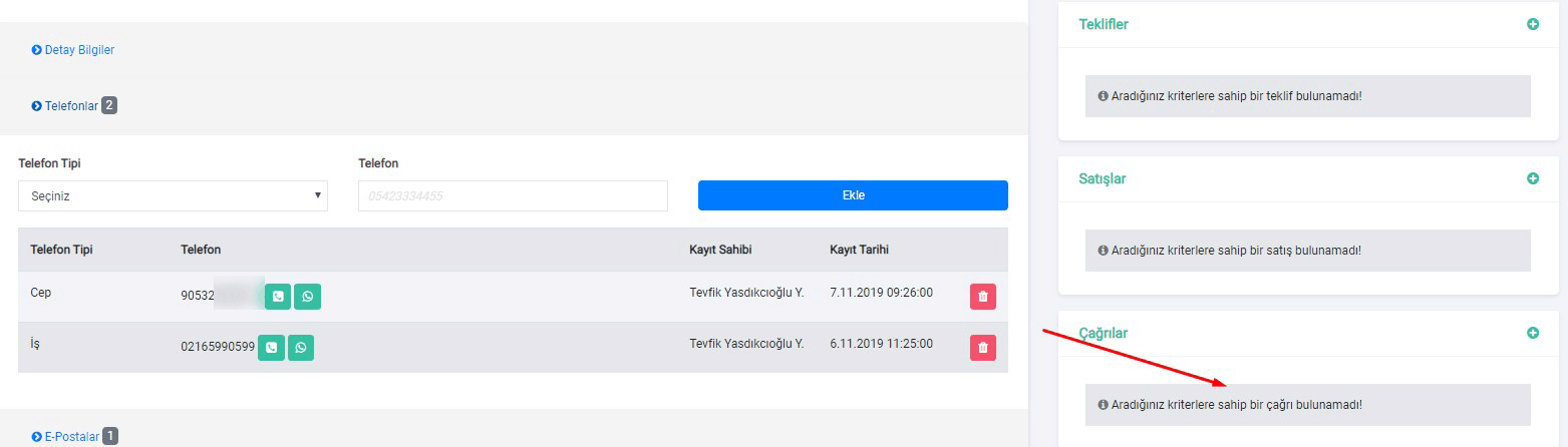 Çağrılar ekranında müşterileriniz ile yaptığınız görüşmeleri görüntüleyebilirsiniz.